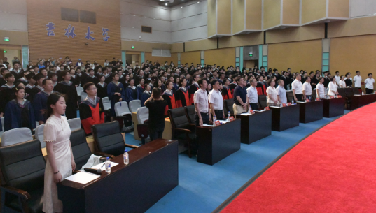 典礼在庄严的《中华人民共和国国歌》中拉开帷幕,学院党委书记孟文卓、院长邹勃、党委副书记杨讴菡、唐宗明,副院长王海军、杜菲、杨景,学位委员会成员姚明光、韩永昊、马克岩以及教师代表年桂君、各年级辅导员,与毕业生、家长共同见证了这一重要时刻。