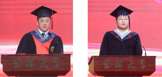 毕业研究生代表陆文成和本科毕业生代表王佳新分别上台发言,表达了对学院和老师们的感激之情,并分享了他们在大学期间的成长经历和感悟。他们的话语中充满了对未来的憧憬和信心,也传递了对学院和老师的深深眷恋。