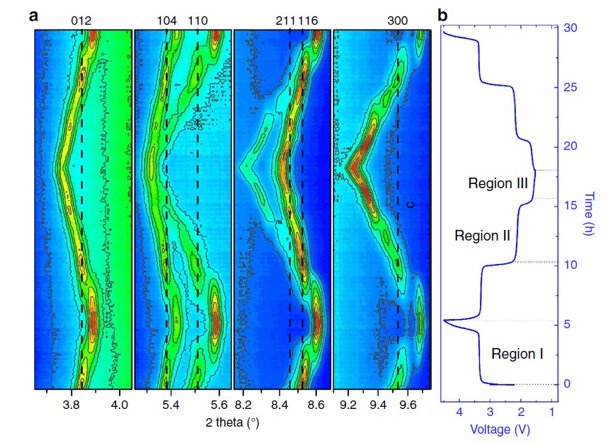 新能源汽车的快速发展引发了人们对锂电池与有限的锂资源的高度关注。钠电池具有与锂电池相似的工作原理,且钠资源广泛,价格低廉、环境友好等特点,特别适合于大规模储能应用的需求。该研究团队设计并制备了新型钠超离子导体材料(磷酸钒钛钠),并利用其双极特性,构建了对称钠离子电池,实现了超长循环寿命(10000次)和超快的充放电能力(20 C倍率),为开发与设计下一代钠电池提供了全新的研究思路。同时,团队与德国卡尔斯鲁厄理工学院、西班牙同步开放联合会和中科院北京物理所清洁能源实验室的研究者共同努力,利用原位同步辐射和近边吸收谱解释了磷酸钒钛钠的储钠过程与机制,为国内外同行的后续研究提供参考。下图为该材料充放电过程中的结构演变。
