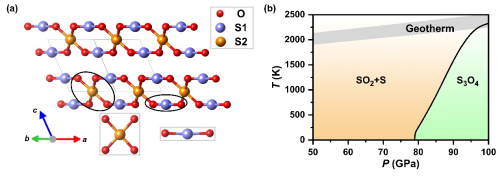 硫作为一种典型的多价态元素,广泛地参与地球内部的多种化学过程。早期,人们发现一些火山在其喷发过程中会释放大量的硫(主要是SO2),其含量比火山熔体中所能容纳的硫含量高出几个数量级,这就是著名的火山喷发的“硫过量”问题。对于过量硫的来源,前人基于地球浅层数据提出了多种可能解释,但前期研究工作发现,地球浅层的S可能来源于处于高温高压状态下的地球深部。因此,探索硫-氧在地球深部温压条件下的存在形式,对破解“硫过量”的来源具有重要意义。