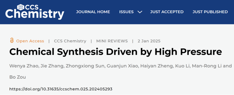 超硬材料国家重点实验室邹勃教授、肖冠军教授团队与北京高压科学研究中心李阔研究员以及海南大学李满荣教授(原中山大学),针对高压驱动化学合成的当前进展和未来前景进行了系统的综述,为后续高性能材料的设计开发提供了建设性的指导。相关研究成果以“Chemical Synthesis Driven by High Pressure”为题发表于中国化学会旗舰刊《CCS Chemistry》上。