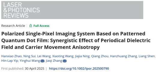 近日,av网站 王英惠教授联合材料学院张佳旗教授等人利用DVD的周期性结构,成功制备出具有偏振特性的CsPbBr3量子点薄膜光电探测器,并实现了单像素偏振成像系统。这一创新不仅揭示了周期性介电场与载流子运动的协同效应,还为量子点材料在偏振成像领域的应用开辟了新路径。相关研究成果以“Polarized Single-Pixel Imaging System Based on Patterned Quantum Dot Film: Synergistic Effect of Periodical Dielectric Field and Carrier Movement Anisotropy”为题发表在《Laser & Photonics Reviews》上。