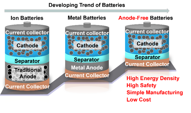 钠离子电池(Sodium-Ion Batteries, SIBs)凭借钠资源储量丰富和成本低廉的优势,被视为智能电网储能系统的重要发展方向。然而,钠的原子质量较高,导致其能量密度普遍低于160 Wh kg⁻¹,难以满足如电动汽车和电动船舶等对高能量密度有严格要求的应用领域。此外,传统SIBs通常需使用过量的负极材料,极大地降低了电池的能量密度。无负极钠金属电池通过舍弃负极材料大幅度提升电池的能量密度。其工作原理为:在充电过程中,正极中的钠离子直接在集流体(如铜箔)表面通过电化学反应沉积钠金属作为负极。但该体系面临严峻挑战:钠金属的高反应活性、剧烈的电极体积变化,特别是不可控的钠枝晶生长等问题,导致无负极电池的循环寿命急剧下降,只能循环几十圈。更为关键的是,目前集流体设计策略普遍缺乏深入的理论指导,这严重制约了无负极钠金属电池的实用化进程和进一步发展。