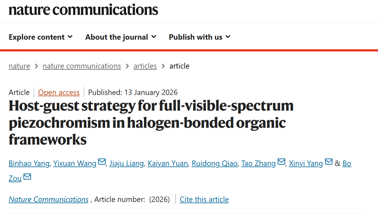 中日联谊医院张涛副教授等人合作,在全可见光谱压致变色领域取得重要突破。通过主客体策略抑制高压下芳香稠环客体的结构无序,实现了主客体卤键有机框架(XOF)材料XOF@AD从深蓝色到红色的全可见光谱压致变色。相关成果以“Host-guest strategy for full-visible-spectrum piezochromism in halogen-bonded organic frameworks”为题发表在《Nature Communications》上。