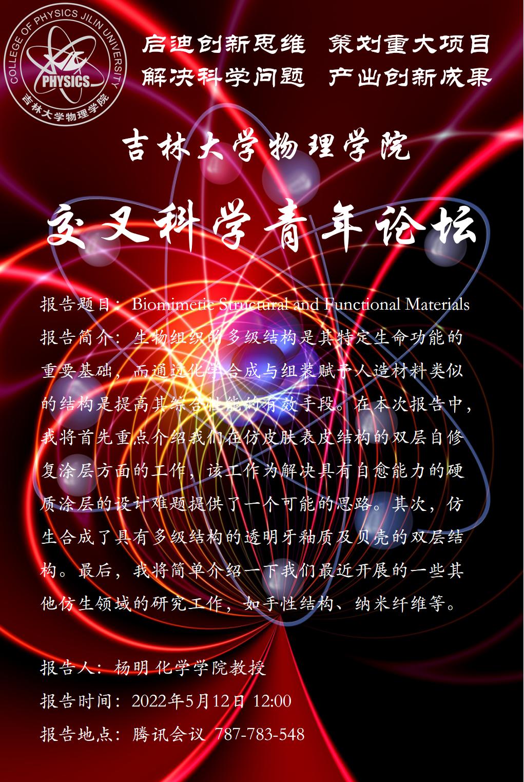 生物组织的多级结构是其特定生命功能的重要基础,而通过化学合成与组装赋予人造材料类似的结构是提高其综合性能的有效手段。在本次报告中,我将首先重点介绍我们在仿皮肤表皮结构的双层自修复涂层方面的工作,该工作为解决具有自愈能力的硬质涂层的设计难题提供了一个可能的思路。其次,仿生合成了具有多级结构的透明牙釉质及贝壳的双层结构。最后,我将简单介绍一下我们最近开展的一些其他仿生领域的研究工作,如手性结构、纳米纤维等。