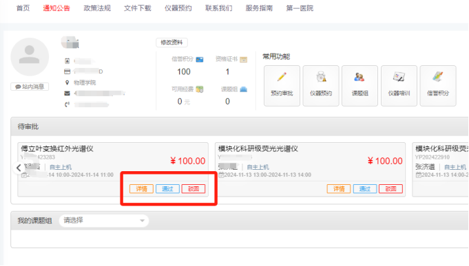 实验室综合管理平台,登陆完成后进入仪器预约项目。