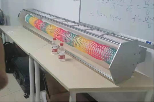 两项获奖仪器分别为“适应理论课堂的克拉尼图形演示仪”和“弹簧横纵波及其合成演示仪”。在评选中,梁桁楠老师从这两个自制仪器的科学性和创新性入手,详细讲解了其工作原理和在教学中的作用。两件仪器均受到了评审小组的肯定,最后分别取得了一等奖和三等奖的好成绩。