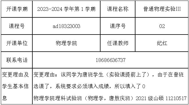 根据《关于进一步明确本科生课程考核等有关问题的通知》(校教字[2018]47号)文件有关精神,现对一下课程成绩更正进行公示: