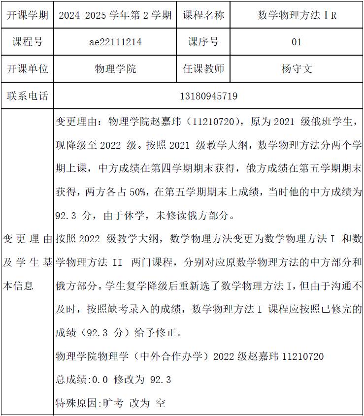 根据《关于进一步明确本科生课程考核等有关问题的通知》(校教字[2018]47号)文件有关精神,现对以下课程成绩更正进行公示: