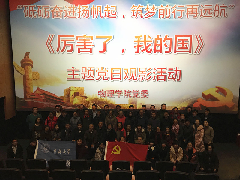 党委在吉大巨幕影城组织了“砥砺奋进扬帆起,筑梦前行再远航”主题党日观影活动,即组织全体教工党员观看电影《厉害了,我的国》。在观影活动开始前,为“不忘初心、牢记使命”——学习宣传贯彻党的十九大精神征文活动中获奖同学举办了颁奖典礼,党委书记孟文卓为获奖同学颁奖并表示祝贺,鼓励同学们奋勇争先,再创佳绩。此外,希望通过今天的观影活动,能够进一步让广大党员坚定“四个自信”,凝心聚力,共筑辉煌。随后,观影活动正式开始。