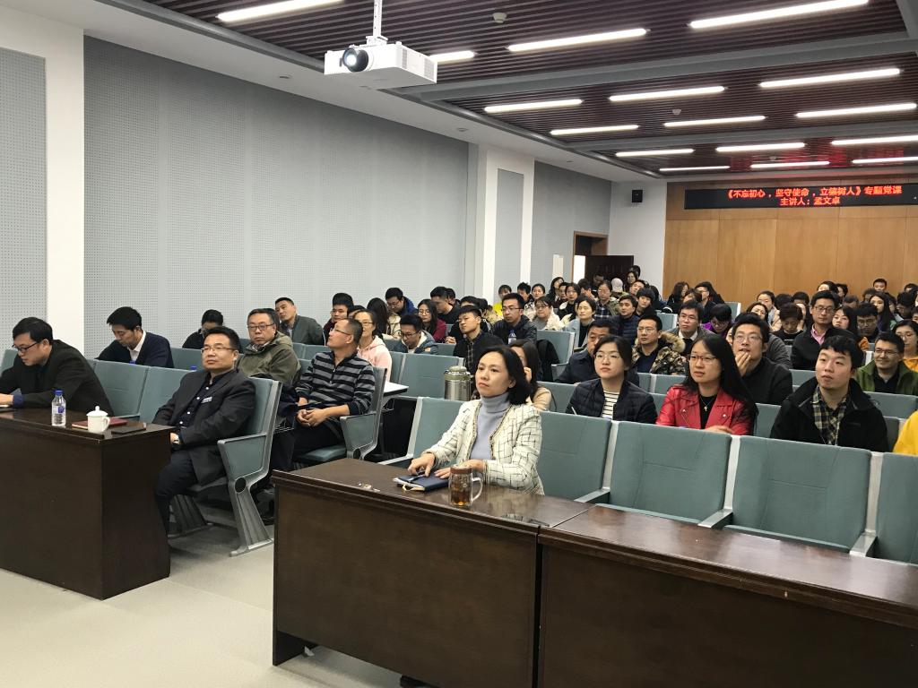 根据学校党委“不忘初心、牢记使命”主题教育总体部署,10月31日下午在物理楼333报告厅,学院党委书记孟文卓以“不忘初心、坚守使命、立德树人”为主题,为学院全体师生党员讲授了一堂生动形象的专题党课。校第八指导组副组长鲍锋同志和av网站