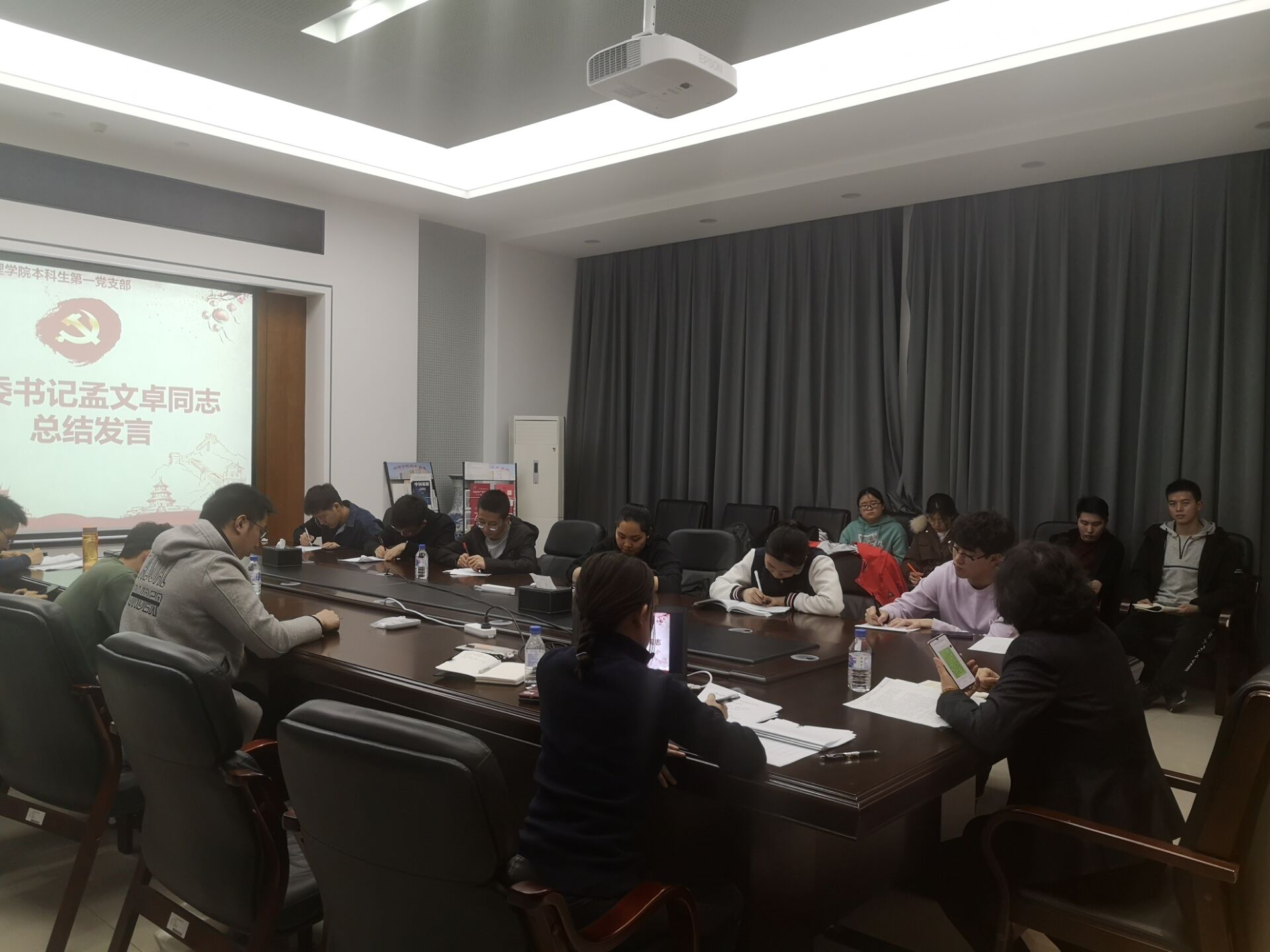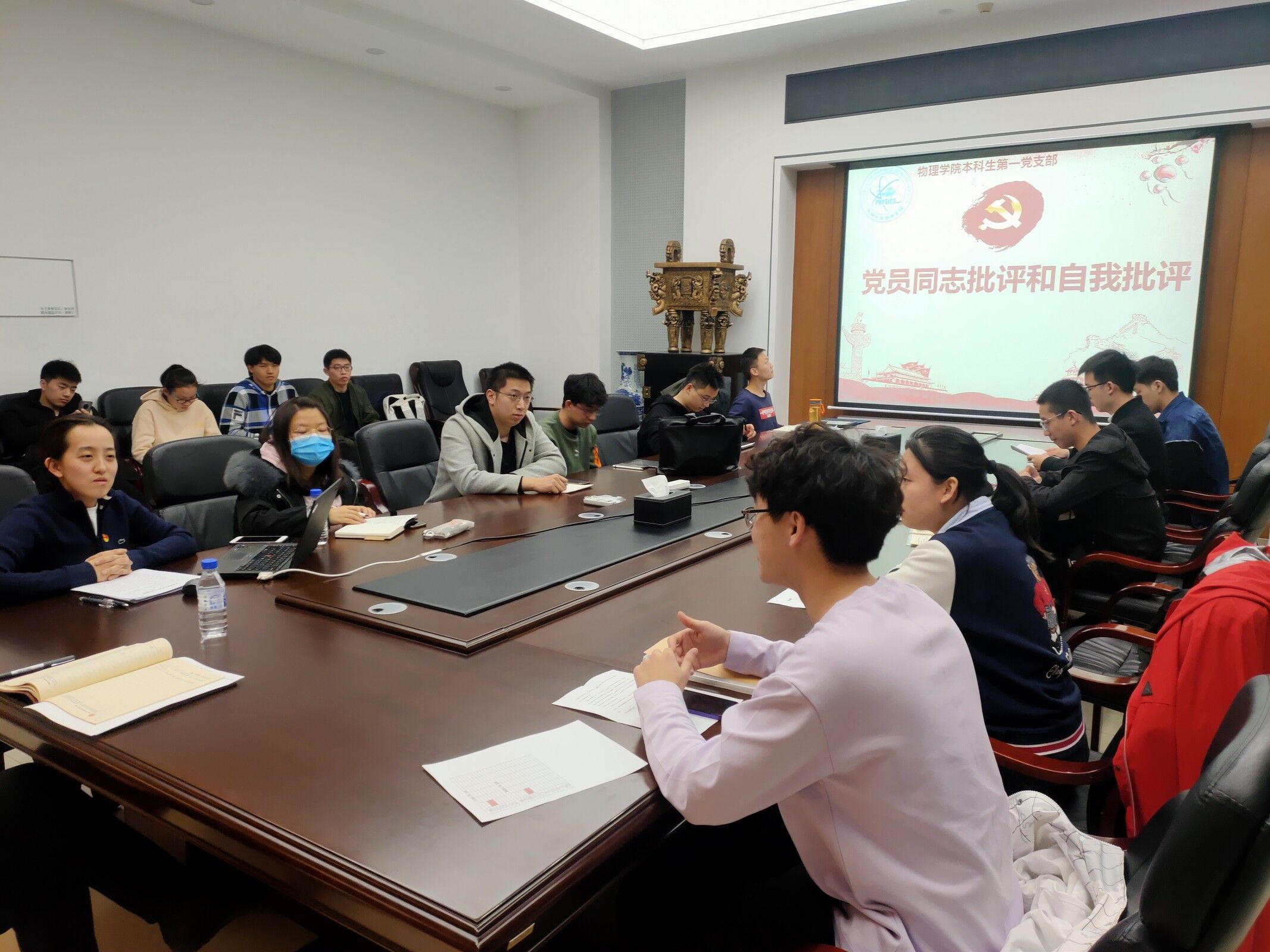 本科生第一党支部组织生活会在物理楼301会议室顺利召开。会议由支部书记张羽主持。学院党委书记孟文卓同志参加会议并指导工作。