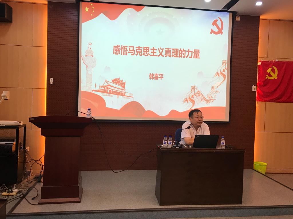 为深入学习贯彻习近平新时代中国特色社会主义思想和党的十九大精神,扎实推进党的基层组织和党员队伍建设,增强基层党组织的创造力、凝聚力和战斗力,6月28日下午,av网站 党委邀请马克思主义学院教授韩喜平为学院全体师生党员作了《感悟马克思主义真理的力量》专题报告。