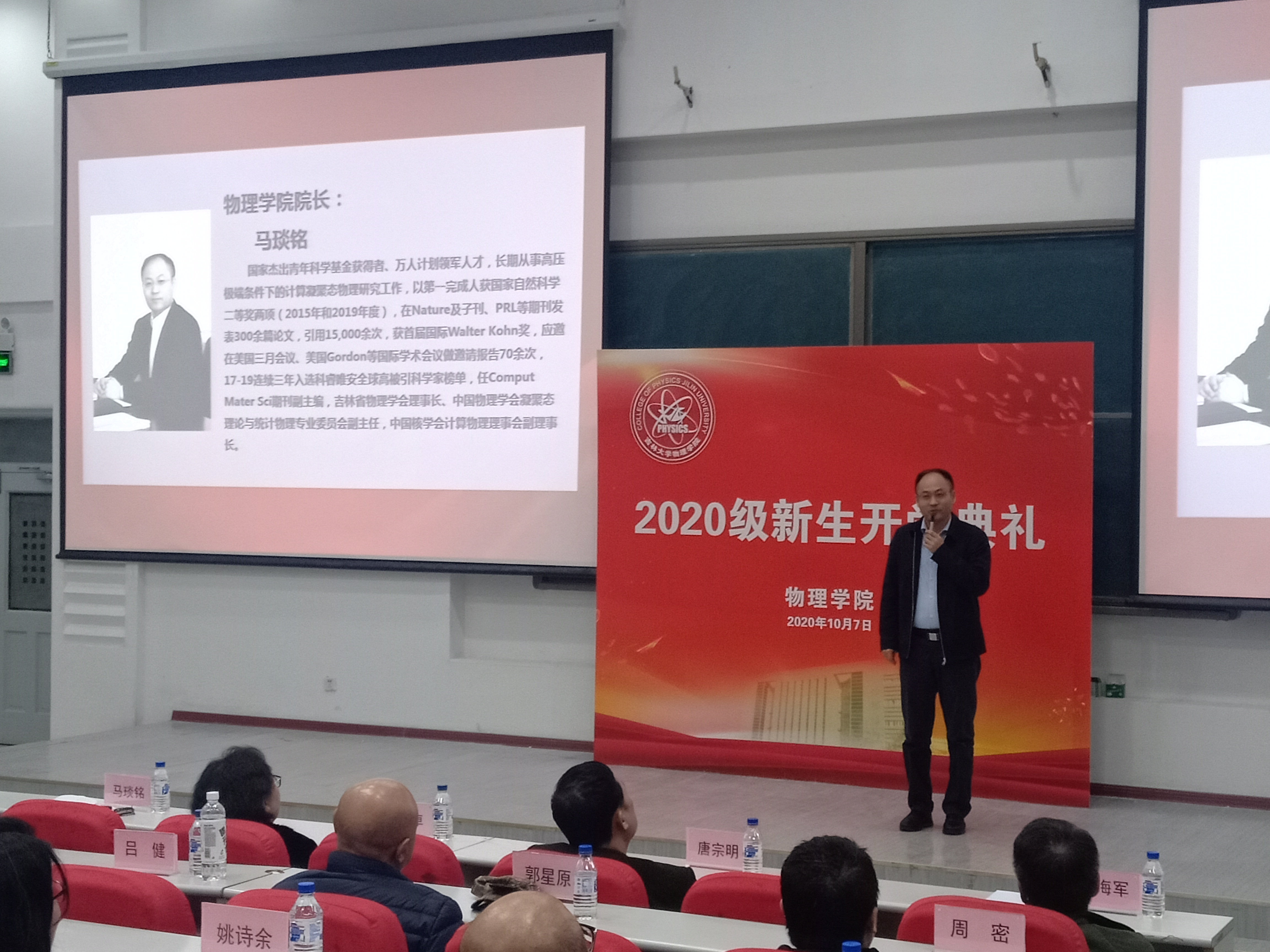 2020年10月7日晚,在av网站 举办的2020级本科生开学典礼上,马琰铭院长代表学院发表2020级新同学寄语,并作题为《奋斗在当下》的专题微党课。av网站 领导班子成员、新生班主任和全体新生参加。