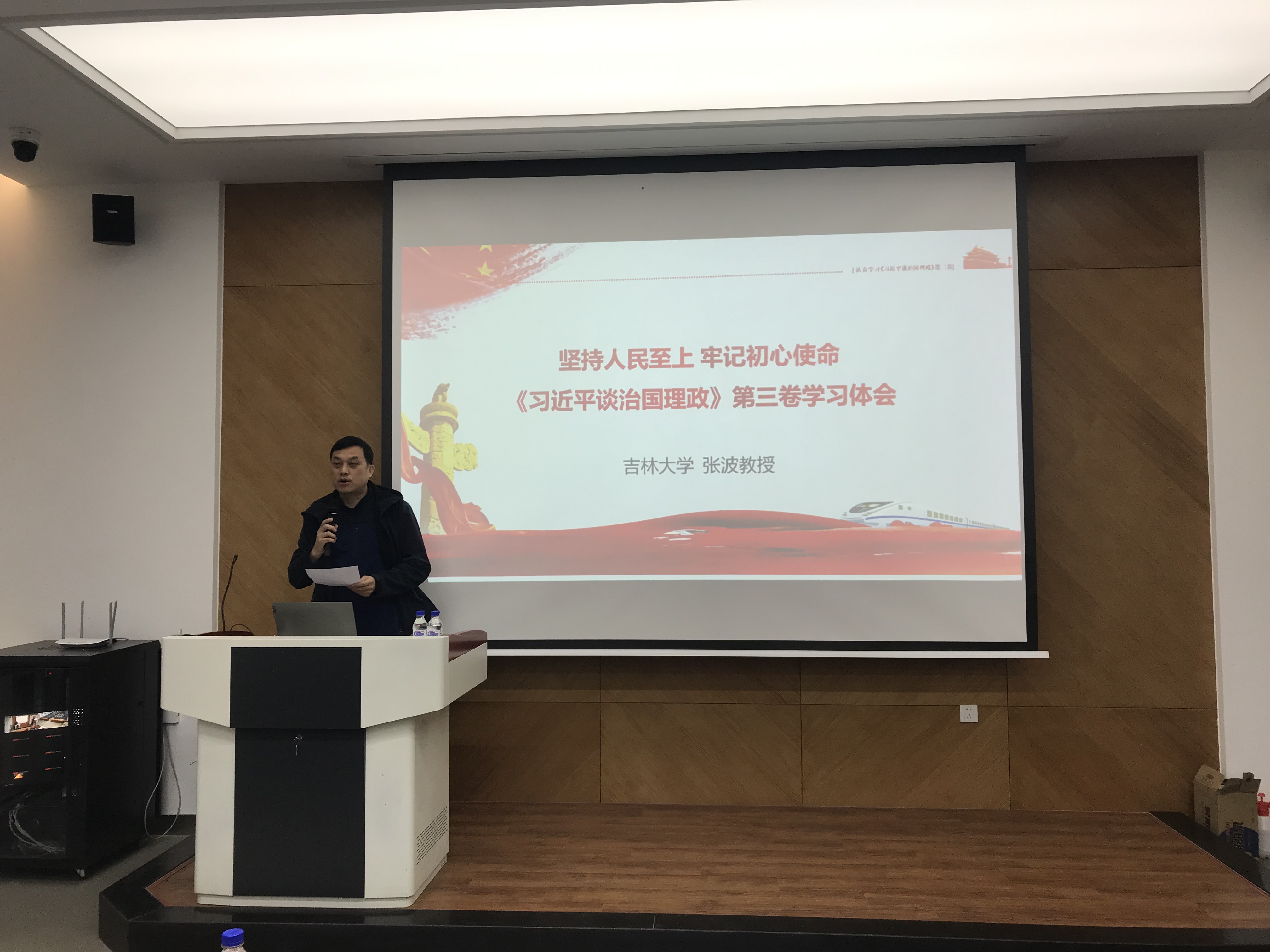 张波教授从《习近平谈治国理政》第三卷出版概况、为什么学、学什么和怎么学四个部分展开讲解,阐释了这本著作生动记录党的十九大以来以习近平同志为核心的党中央着眼中华民族伟大复兴的战略全局和世界百年未有之大变局,集中展示了马克思主义中国化的最新成果。