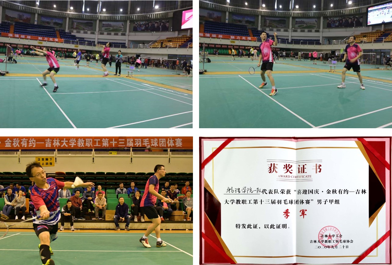 第十三届教职工羽毛球团体赛在中心校区体育馆举行。本次比赛共有64支代表队参加角逐,我院派出两支男子代表队和一支女子代表队共20名运动员参赛。