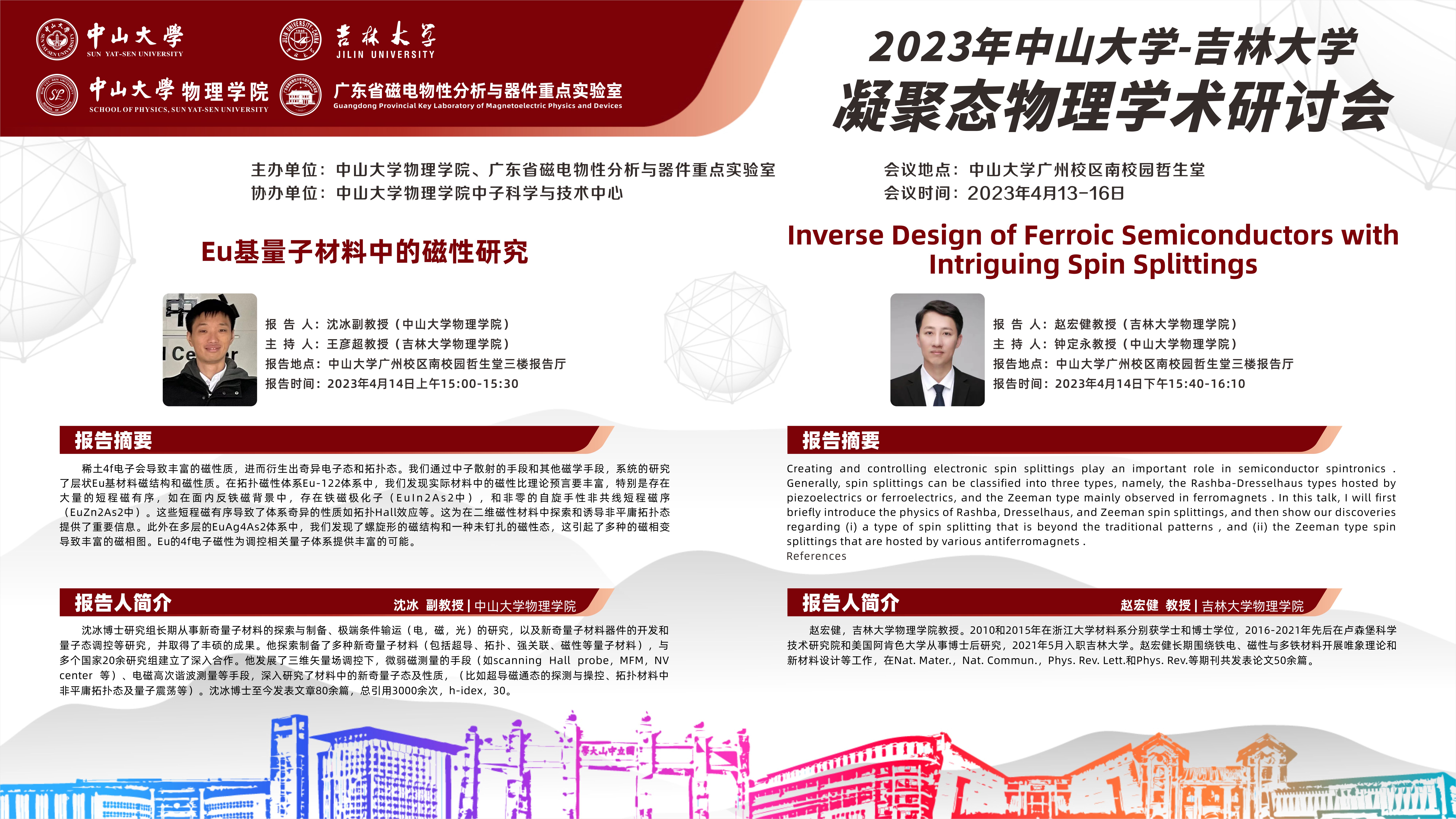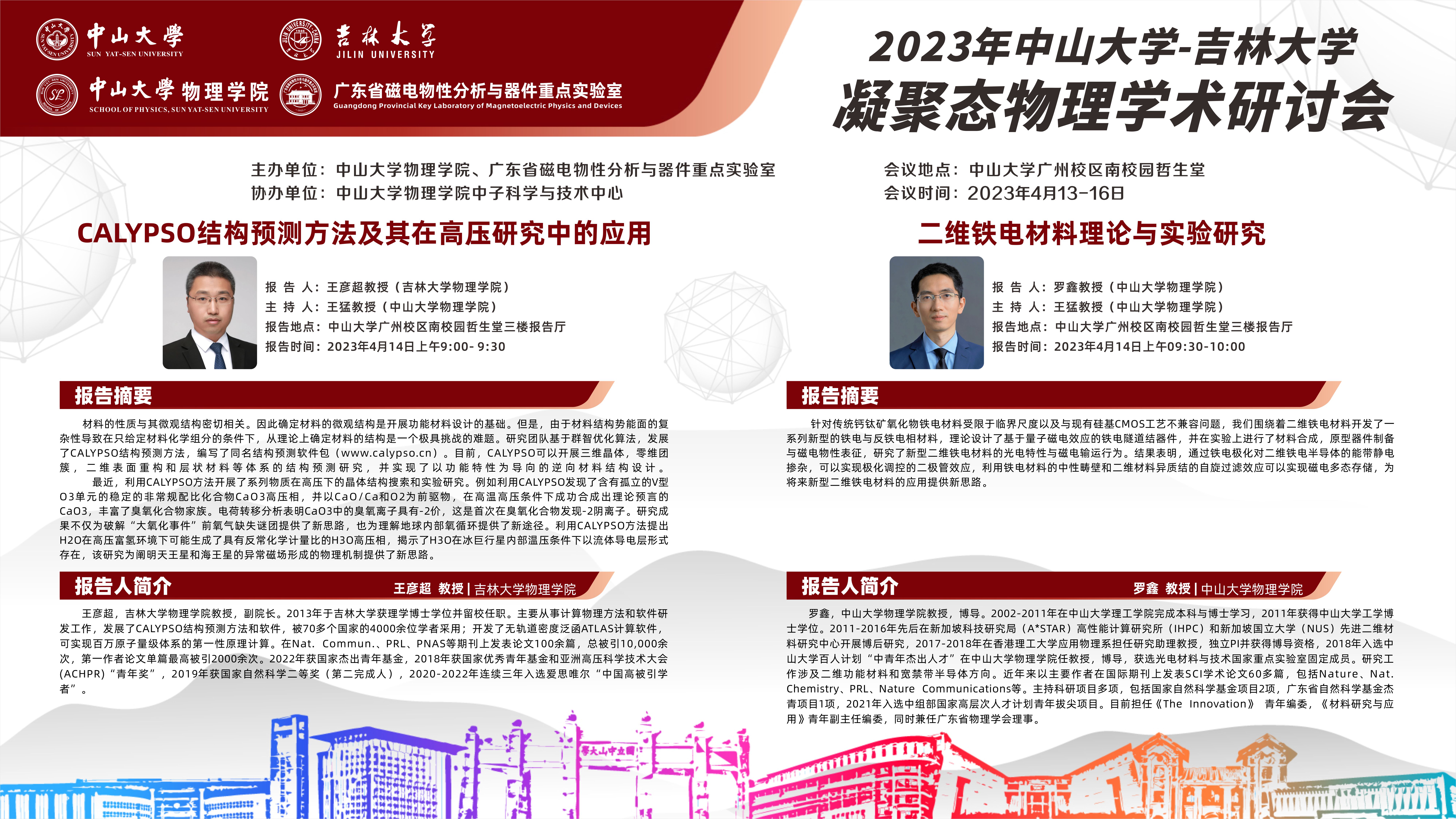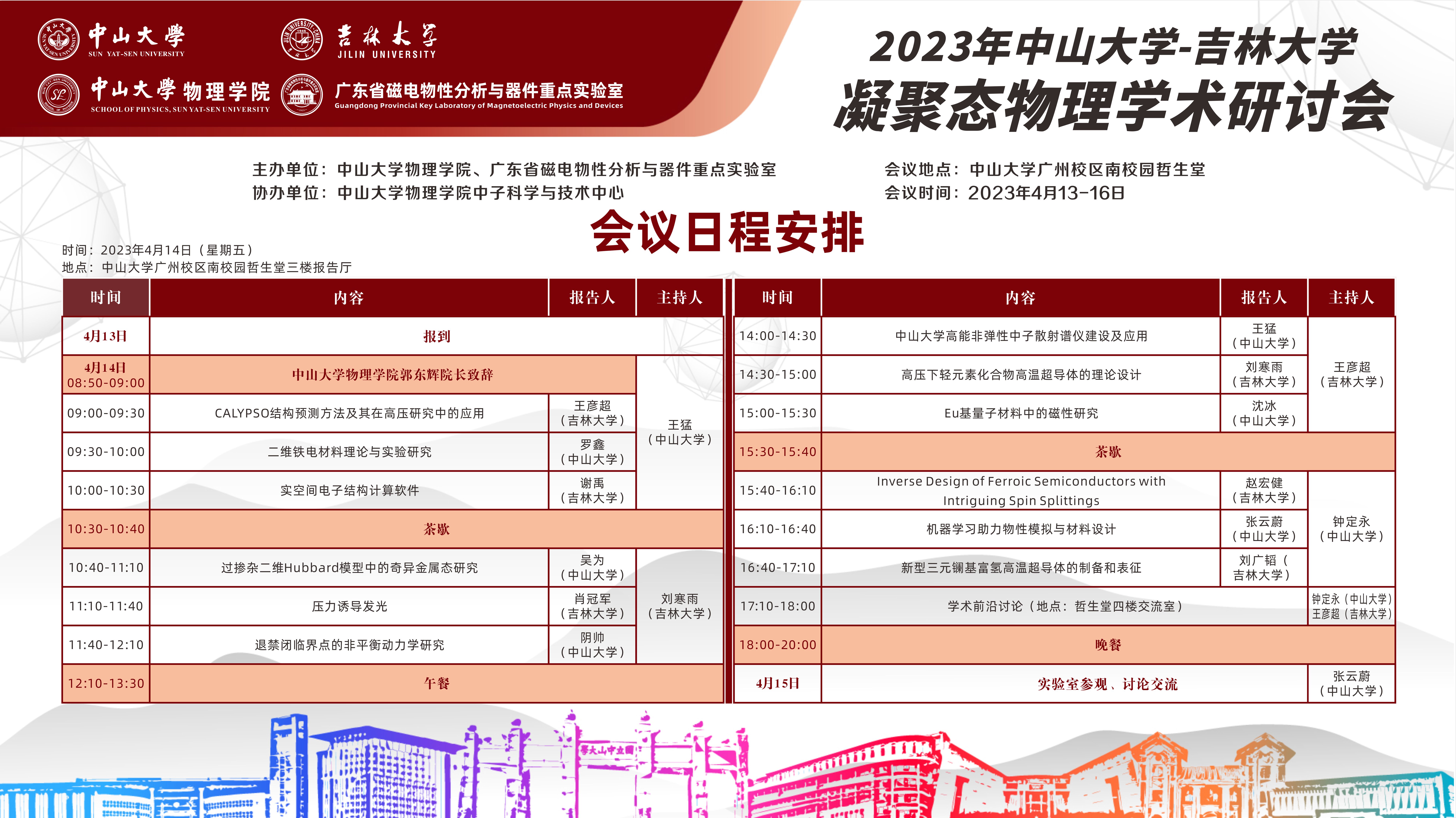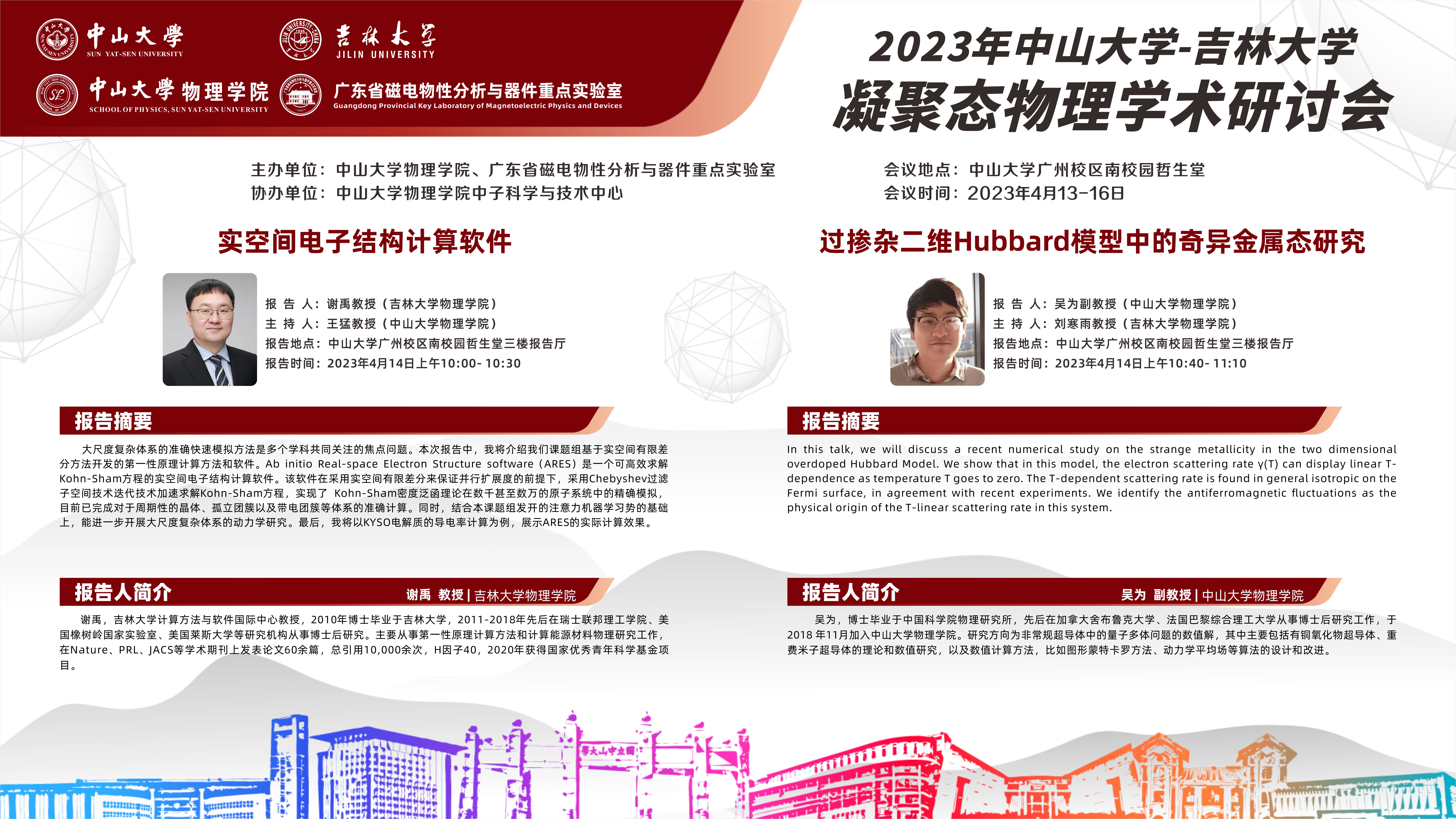 凝聚态物理学术研讨会将于4月13-16日在中山大学广州校区南校园召开,本次研讨会由中山大学av网站