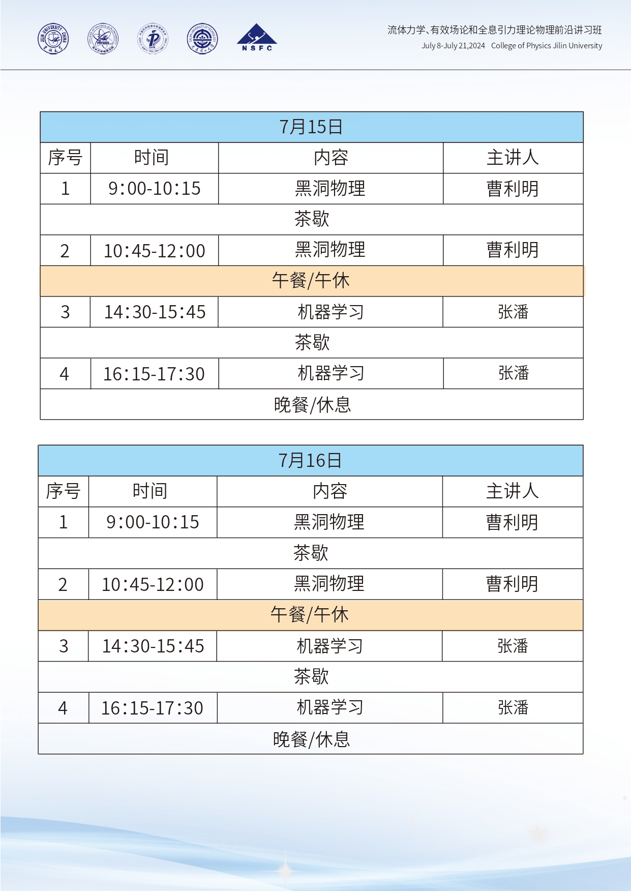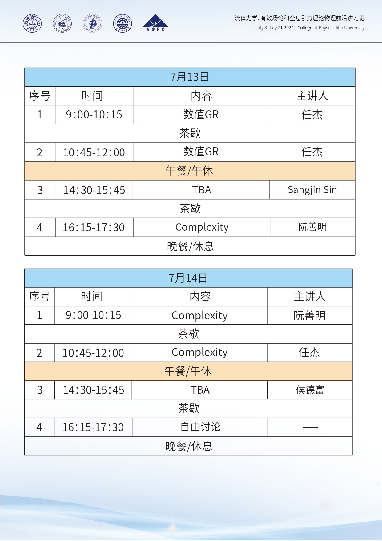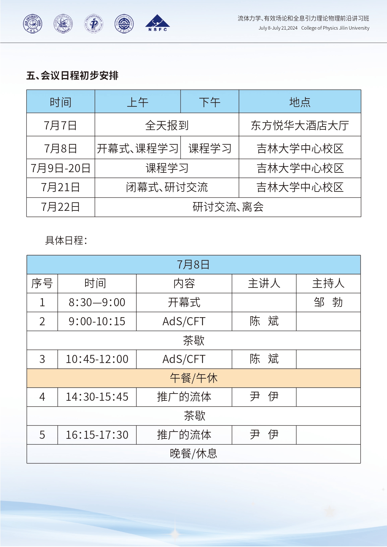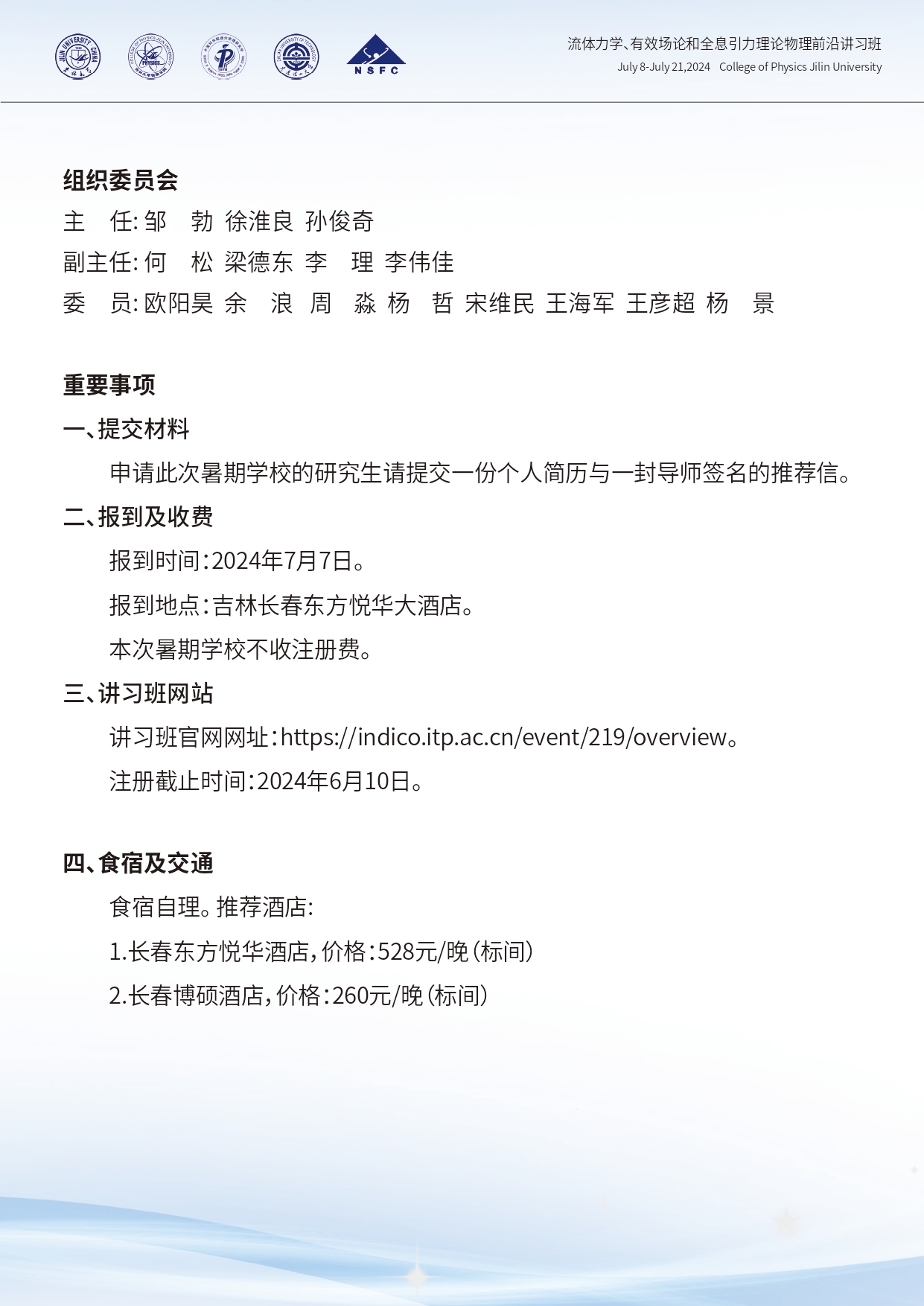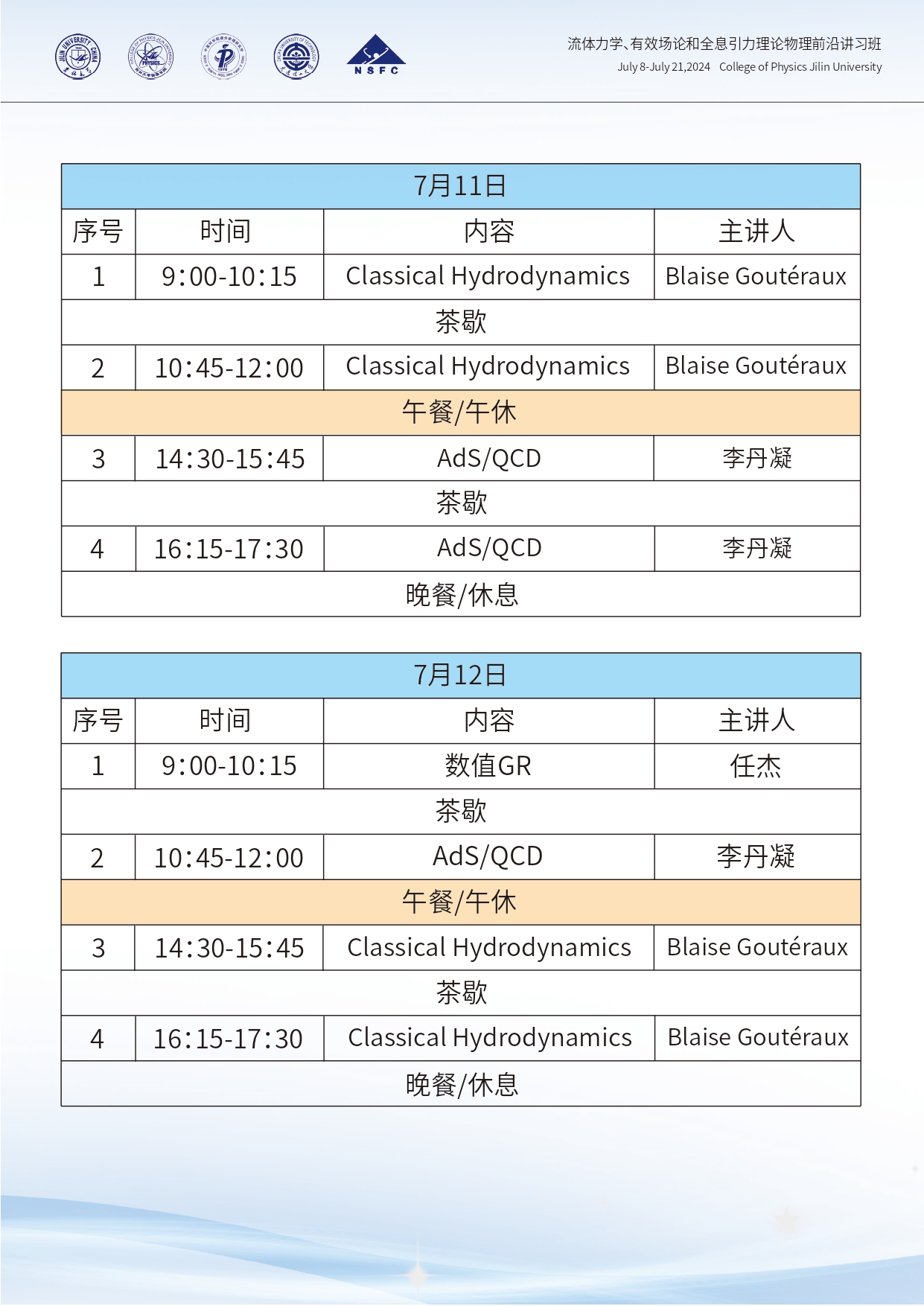 流体力学、有效场论和全息引力理论物理前沿讲习班第二轮通知
