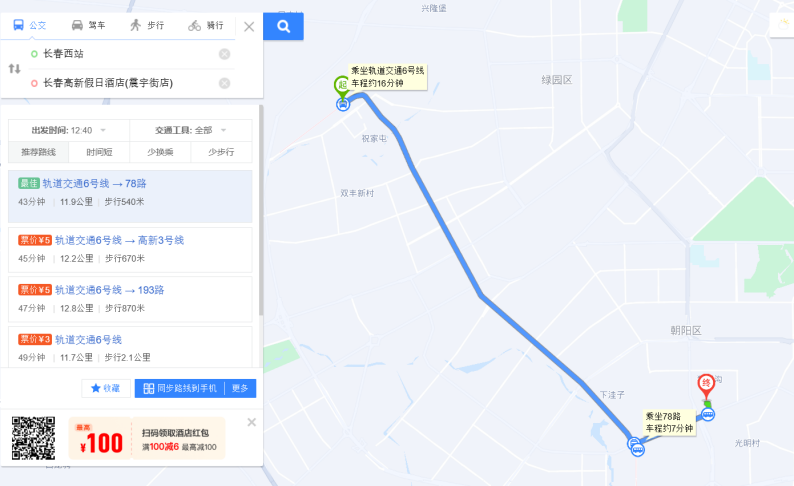 2.乘坐火车到达长春站,公共交通约50分钟;