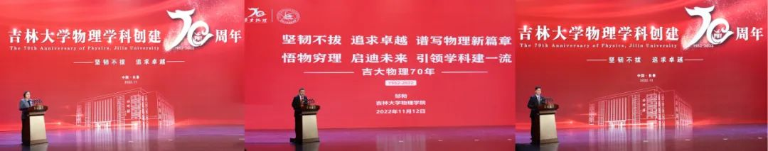 罗俊在致辞中表示,吉大物理学科有着深厚的历史底蕴,坚守东北,拥有一批好老师,值得师生、校友为其骄傲,为国家做出了很多杰出的贡献,希望以70周年为契机,坚持正确的办学方向,落实立德树人根本任务,坚持走内涵式发展道路,坚持服务国家重大战略。