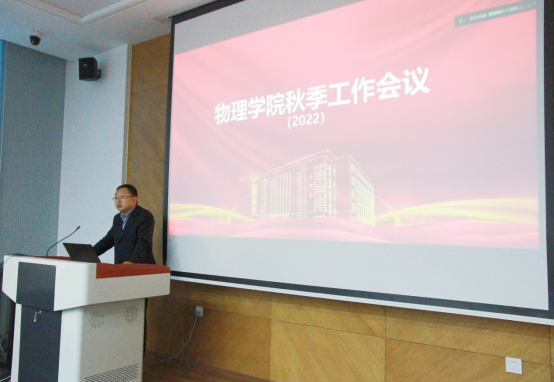 首先,院长邹勃对战斗在抗疫一线的学院教职工和同学们表示衷心感谢,高度赞扬了他们为师生生命健康安全付出的努力和辛苦。然后,邹勃重点从科学研究、人才培养方面,总结了2022年学院取得的成绩,分析了不足,查找了问题。邹勃指出,学院优势突出,但存在的不足也很明显,学院要充分发挥优势,弥补不足,努力打造“风清气正”的人文环境,全力推动高压物理、计算物理高峰学科的建设发展,协力提高能源物理、理论物理、光物理的建设水平,协调加快推动“双一流”建设。邹勃对下半年工作进行了安排部署,着重强调了三点,一是在科研方面,要做有品位的工作。要以满足国家需求为导向,坚持“四个面向”,强化前沿科学部署,凝练科学问题,积极申报国家项目,承担国家任务,同时要加强成果转化,突破核心关键技术。二是在师资队伍建设方面,要全力引育人才。人才不仅要以“请”为“引”,更重要要在育上下功夫,首先对陷入职业困境的老师,要“融”“转”结合, 力争实现“人尽其才,才尽其用”,其次要加大对青年教师的支持力度,要发现苗子,提前规划,早做安排。三是,齐短板,补不足,严标准,实考核。要求老师要把自己短板补齐,严格按照学校要求,给予高标准考核,展现出与一流学科相符合的水平。