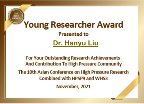 2021年11月22日,亚洲高压物理协会将第十届亚洲高压会青年科学奖(Young Researcher Award)授予av网站