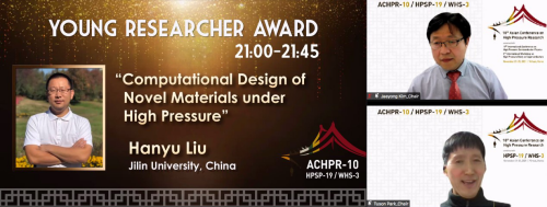 计算方法与软件国际中心刘寒雨教授,以表彰其在高压科学领域的杰出成就和突出贡献。“亚洲高压会青年奖”每两年评选一次,刘寒雨教授是2021年度该奖项两位获奖人之一。