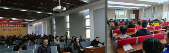 在物理楼333召开2024年度春季工作会议,学院全体教职员工近200人参加了会议。