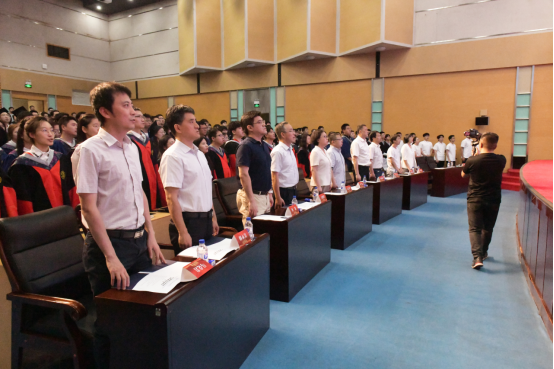 典礼在庄严的《中华人民共和国国歌》中拉开帷幕,学院党委书记孟文卓、院长邹勃、党委副书记杨讴菡、唐宗明,副院长王海军、杜菲、杨景,学位委员会成员姚明光、韩永昊、马克岩以及教师代表年桂君、各年级辅导员,与毕业生、家长共同见证了这一重要时刻。