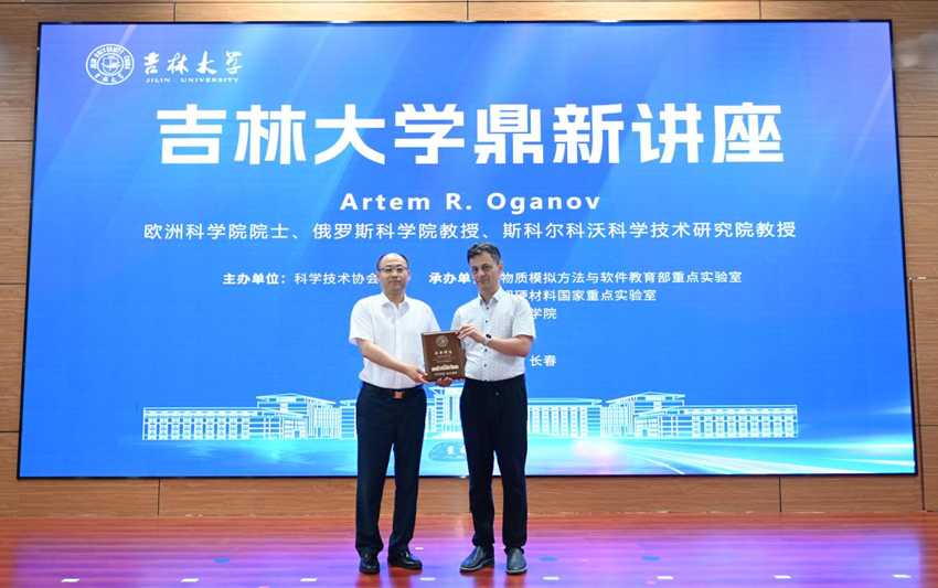 副校长马琰铭主持讲座,并为Artem R. Oganov教授颁发“鼎新讲座纪念牌”。在讲座嘉宾介绍中,马琰铭高度赞誉了Oganov在晶体结构预测和计算新材料领域所做出的杰出贡献,并表达了对本次讲座能够启发师生科研新思路的期待。