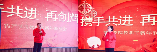 教职工新年联欢会在莘子园成功举办。本次联欢会特别邀请了安徽大地熊新材料股份有限公司常务副总经理陈静武先生和技术中心副主任黄秀莲女士,陈静武先生和黄秀莲女士分别是吉大物理93级校友和86级校友,他们的到来是学院师生校友一家亲的真实写照,为联欢会增添了一份特别的意义。