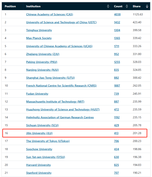 2. 贡献份额(Share/FC, Fractional Count):每篇论文总分值为1,按作者人数及所属机构均分(例如:10位作者各得0.1分;若作者隶属多个机构,需进一步均分)。