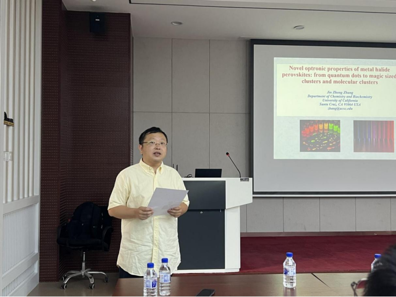 “余瑞璜大讲堂”迎来国际知名学者、加州大学圣克鲁斯分校张金中教授,为师生带来了一场题为《Novel properties of metal halide perovskite nanostructures: from quantum dots to chiral nanoclusters and carrier spin dynamics》的精彩学术报告。av网站