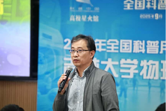 郑以松教授带来量子百年专题科普报告,系统梳理了量子力学从诞生到发展的关键历程,生动阐释了量子纠缠、量子隧穿等核心概念,并结合量子通信、量子计算等前沿技术,展望了量子科技在未来信息时代的广阔前景。报告现场座无虚席,听众沉浸其中,互动频频。“原来量子物理并不遥远,它正在悄悄改变我们的生活!”一位参与活动的中学生兴奋地表示,“郑老师的讲解既严谨又有趣,让我对物理产生了强烈的好奇心。”