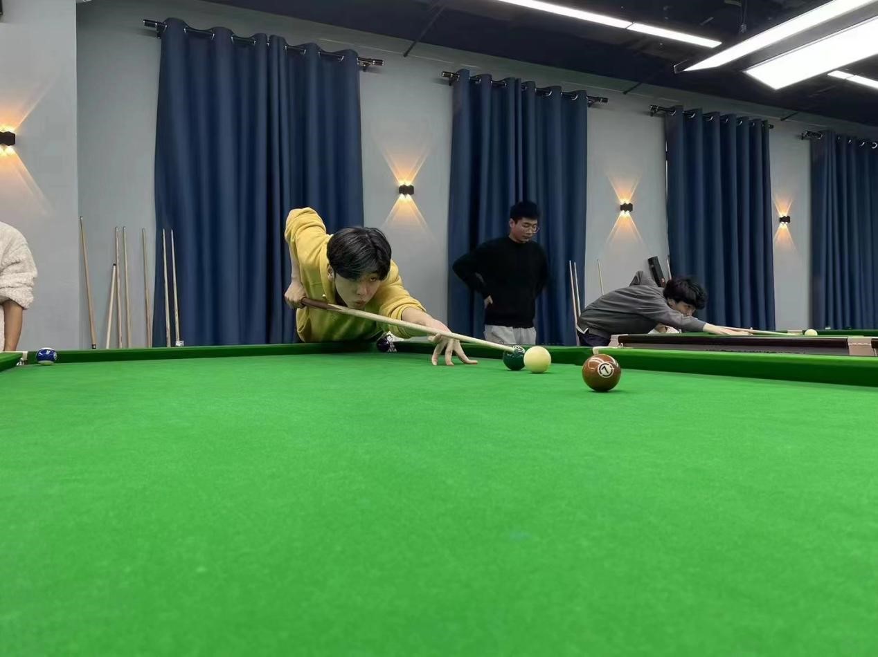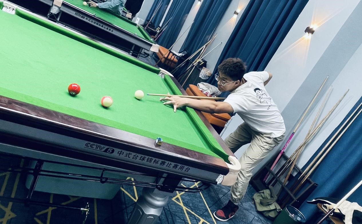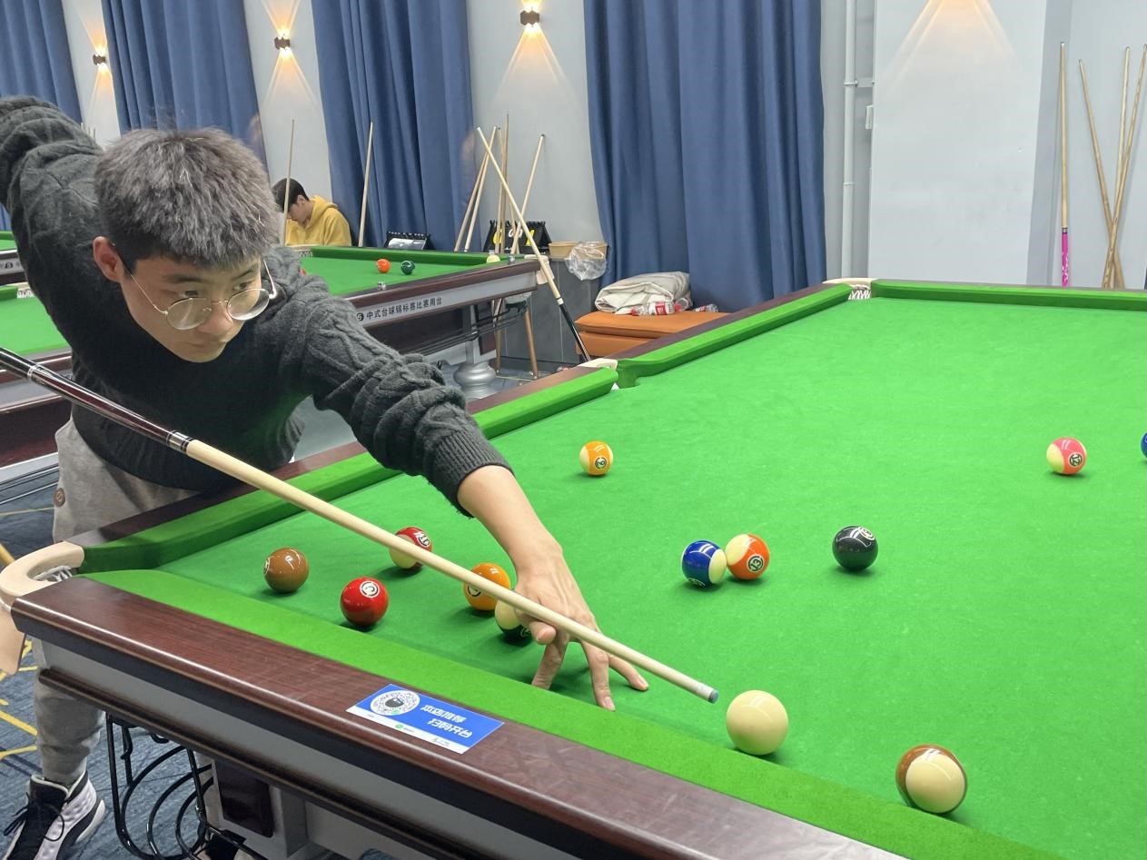 本次比赛采用中式台球规则。比赛过程中,选手们精神抖擞、顽强拼搏,握杆、架桥、出杆、击球,时而大力进攻,一杆定乾坤,时而轻碰防守,局势扑朔迷离,选手们精湛的球技赢得了现场观众的阵阵掌声和喝彩声。经过激烈的角逐,2022级博士研究生谭一程最终荣获冠军,2022级博士研究生石雪健荣获亚军,2020级硕士研究生张孚嘉荣获季军。
