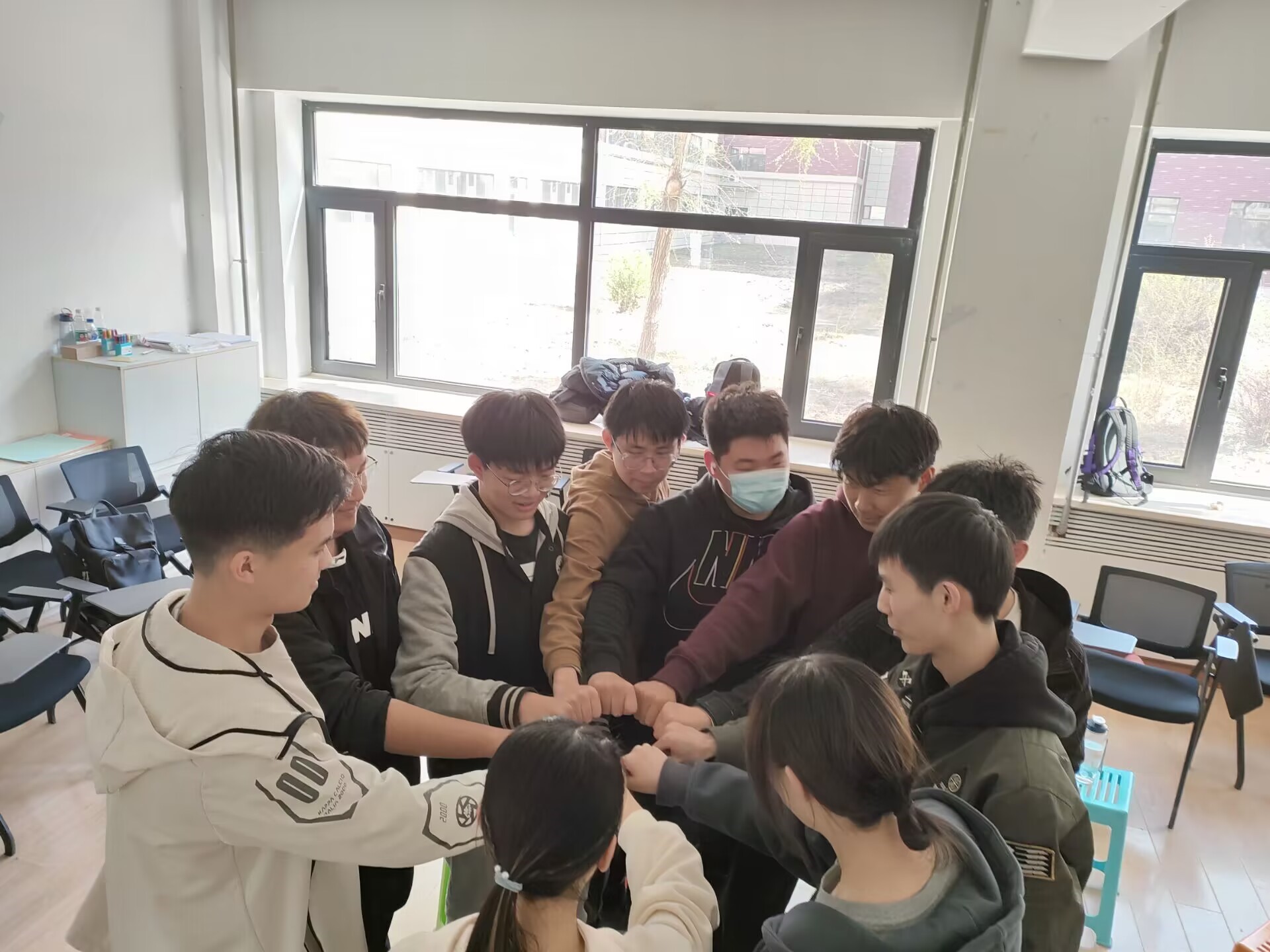 同学们分组进行自我介绍,并分别做一些放松动作。使参与者放松身体,同时处于兴奋状态。