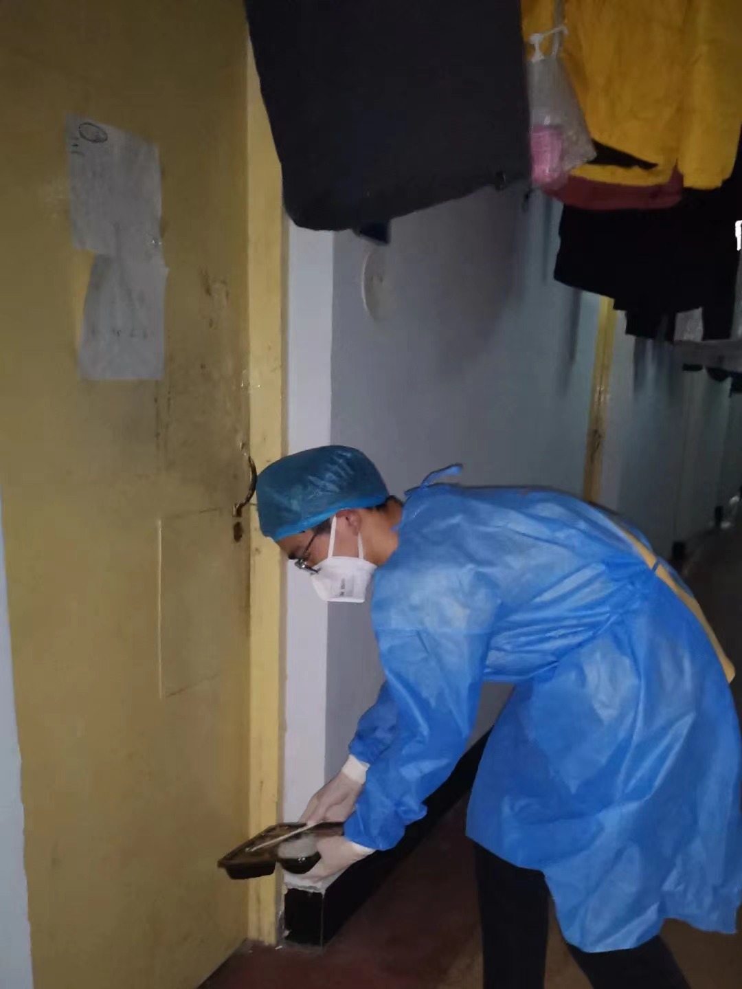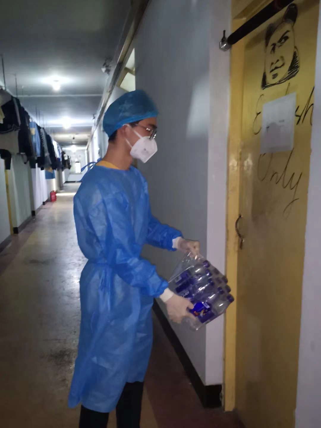 疫情期间我主要负责南苑一公寓五楼的三餐及饮用水等物品的搬运配送,以及五楼志愿者的组织管理和指挥协调。我和志愿者们通力协作,以保证按时把食物和水等物资准确地发放到五楼240余人的手中。