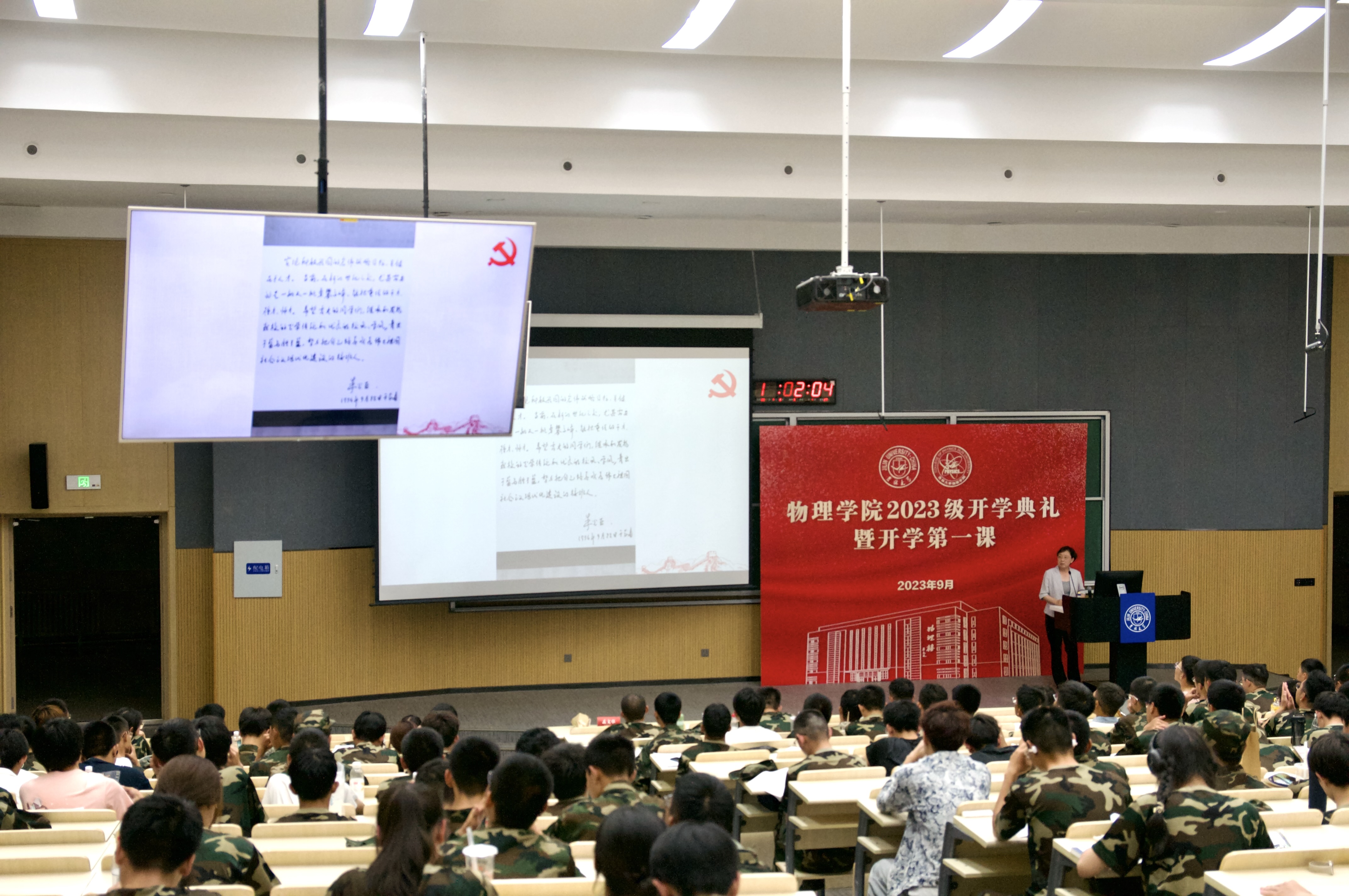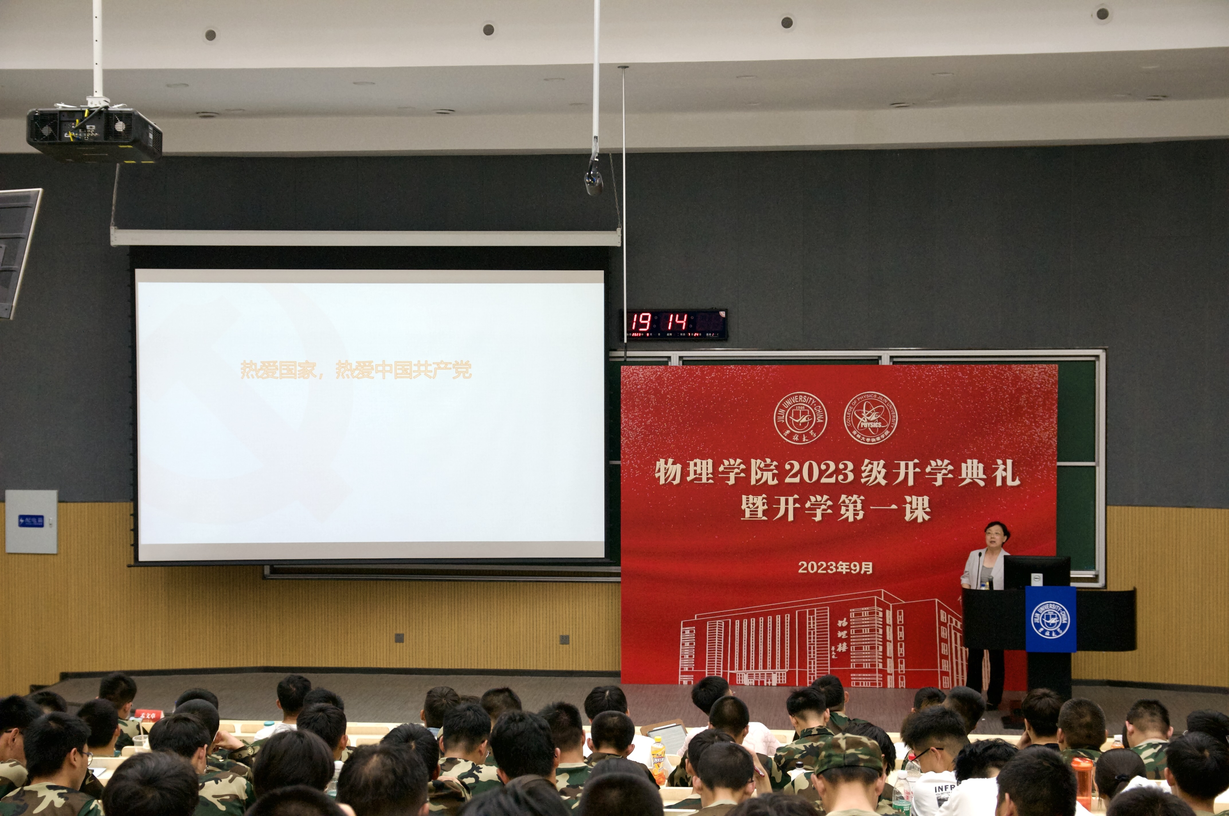 2023级新生讲授题为《薪火相传,后辈奋进》的开学第一课。
