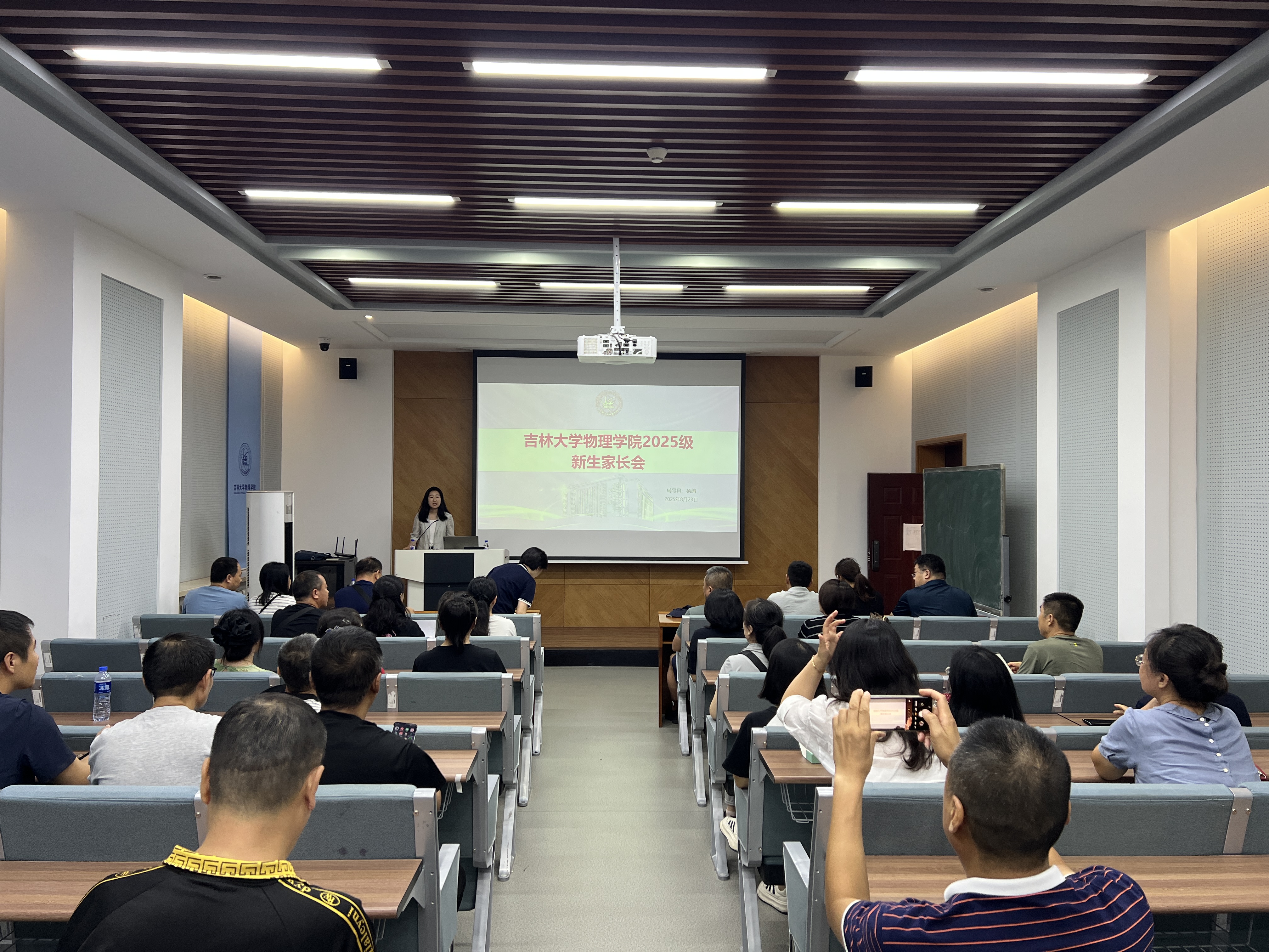 的一员。她强调,大学阶段的成长离不开家庭与学院的紧密协作,需要双方加强联动、同向发力,才能为学生营造优质的成长环境。同时,杨鸽老师寄语新生,要珍惜青春时光,在物理专业学习中深耕细研,既要掌握扎实的理论知识,也要提升实践能力,真正做到学有所成、学以致用。随后,杨鸽老师强调了学生成绩和学生身心健康和安全的相关问题。针对物理学(中外合作办学)专业召开专场家长会,对于中外合作办学专业学生,特别介绍了该专业学生关于出国手续以及托木斯克理工大学的相关情况及教学要求。之后杨讴菡书记对学校、学院整体情况进行了介绍,会后杨讴菡书记和2025级新生的家长们进行了亲切地交流和互动,回答了学生家长的提问。